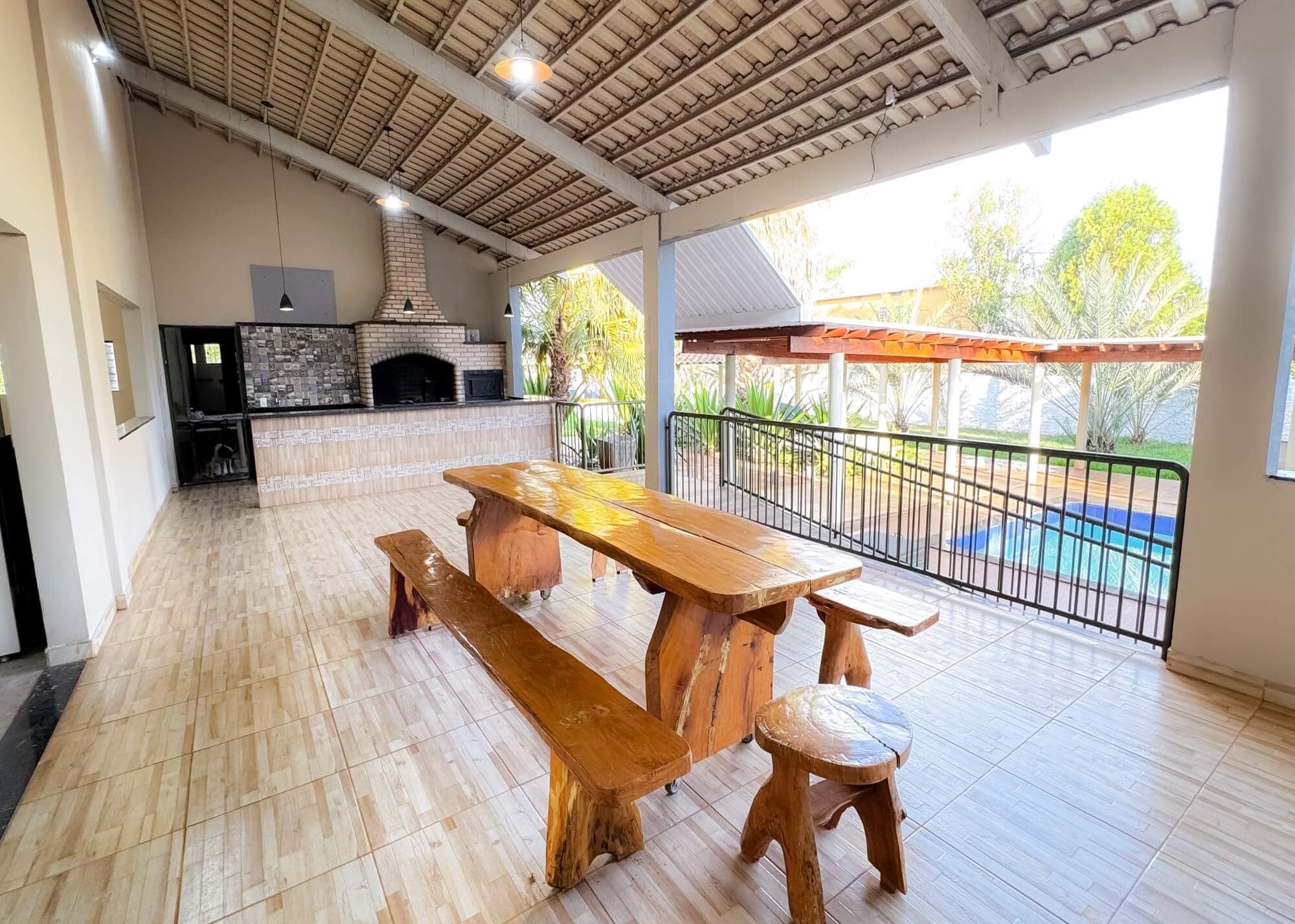 O espaço conta ainda com cozinha totalmente equipada, churrasqueira com fogão a lenha, Wi-Fi, banheiros amplos, espaço para tendas, quarto de apoio e estacionamento para até 70 carros, oferecendo praticidade e comodidade para receber seus convidados com excelência.